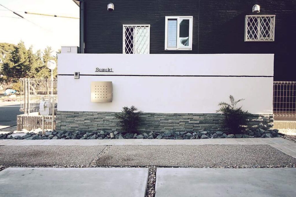 今回はnoelがこれまで手がけてきた外構の施工例を紹介したいと思います。 こちらは和風とモダンを合わせた外構の施工例です。門柱はシックな印象を与える落ち着いた色合いに仕上げ、脇には味わい深い花壇を設置。グランドカバーと花壇の植栽で全体を色鮮やかに色付けながら、階段型のアプローチを施工して高低差を緩和させつつ、幅広設計にすることで安全面にも配慮しています。 門柱の裏にはシンボルツリーを配置して門柱を強調しており、駐車スペースとしてのカーポートも設置。庭には照明つきの坪庭が設置され、和風な印象を全体へと広げています。竹垣を背景とする坪庭によって外構全体がまとまり、和モダンとして十分な外構となりました。
