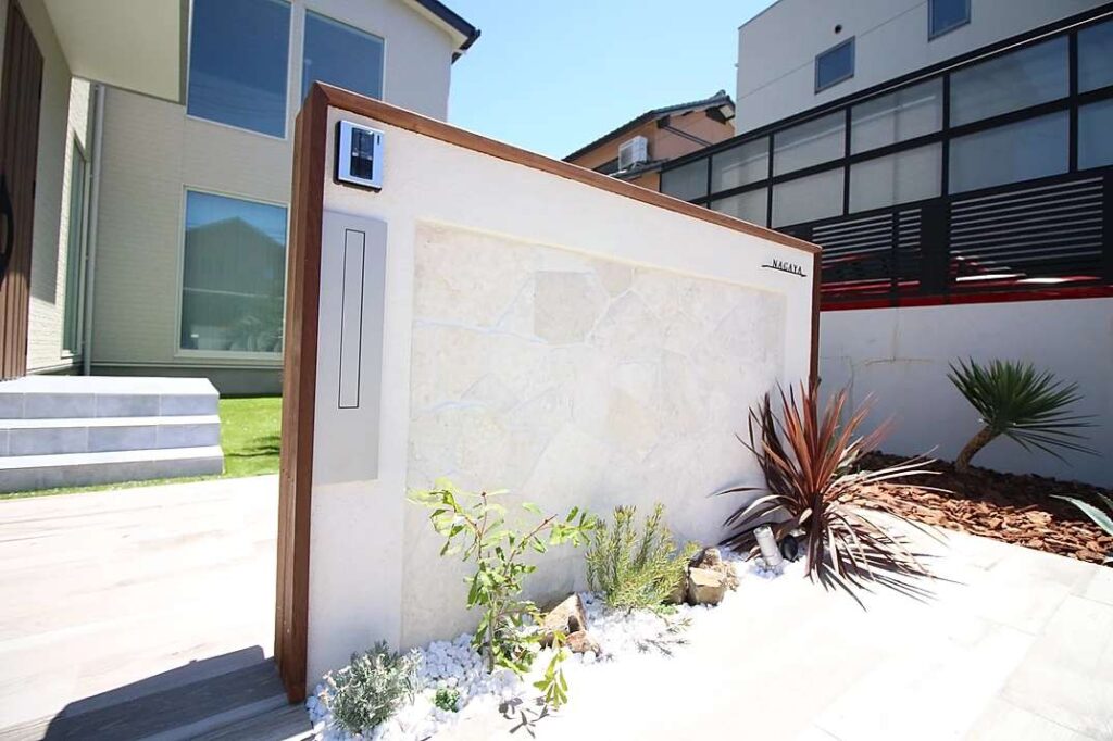 今回はnoelがこれまで手がけてきた外構の施工例を紹介したいと思います。 こちらはリゾート風のデザインを意識した新築外構工事の現場写真です。入り口となる部分には白い門柱を設置し、タイルを組み合わせて高級感ただよう個性的なデザインを設計。インターホンなどの機能も持たせつつ、下にはグランドカバーとなる植栽を採用して色鮮やかに装飾しています。 側にはウッドチップを散らした植栽のエリアがあり、奥にはココヤシを配置。ナチュラルテイストを取り込み、自然を感じられながらもエレガントな印象を与える高級志向の外構が誕生しました。 アプローチの設置とフェンスの施工も行って外構は完成し、安定感がありながらもメンテナンスの手間がかかる部分は少ない仕上がりとなっています。